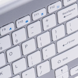 Užite si pohodlie a poriadok bez káblov. Táto ultratenká a kompaktná bezdrôtová klávesnica sa skvelo hodí na pracovný stôl aj k televízii. Nízkoprofilové chiclet klávesy zaisťujú tiché a presné písanie, jemné naklonenie zas podporuje ergonomické držanie rúk.