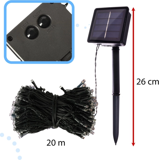 SOLÁRNE SVETLÁ SVETELNÁ REŤAZEŇ 20M 200LED MULTICOLOUR