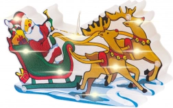 Táto farebná vianočná dekorácia so Santom Clausom v saniach a sobmi sa rozsvieti teplým bielym svetlom a dodá vášmu interiéru útulný sviatočný nádych. Vďaka obojstrannému motívu vyzerá skvele z oboch strán okna a zaujme každého okoloidúceho.