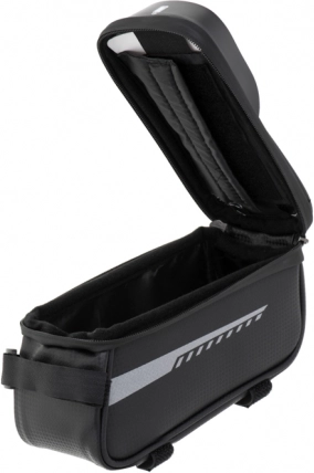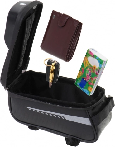 Jej kompaktné rozmery nebudú pri jazde prekážať. Vrecko je uzatvárateľné na zips, čo zaisťuje, že nič nevypadne, ani pri ostrých zákrutách. Montáž brašny je zaistená tromi suchými zipsami: jeden na riadidlá a dva na rám bicykla, čo zaručuje perfektnú stabilitu počas jazdy. Padne na akýkoľvek model bicykla bez ohľadu na značku.