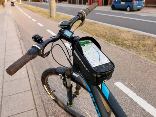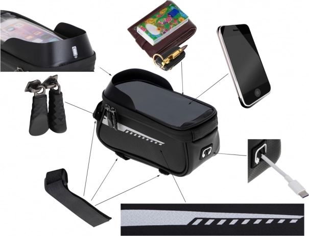 Tento vodotesný cyklistický taška je dokonalým doplnkom pre každého cyklistu, ktorý hľadá funkčné a odolné riešenie pre dlhé jazdy. Je vybavená špeciálnym miestom pre telefón, takže ho môžete jednoducho používať ako navigáciu alebo hudobný prehrávač počas jazdy. Držiak je navrhnutý tak, aby telefón zostal viditeľný a prístupný cez priehľadné a vodotesné okienko.