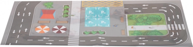 Súčasťou je podložka s ulicovým potlačou, ktorá rozšíri herný priestor a uľahčí stavbu vlastného mesta okolo parkoviska.