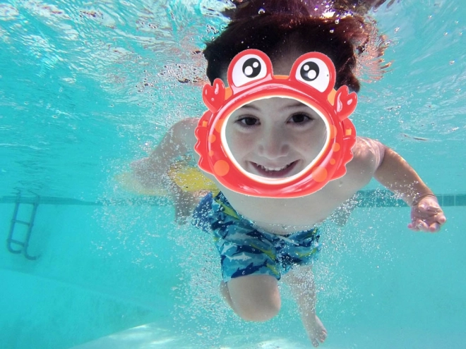 Táto rozkošná maska s motívom kraba premení každé kúpanie na zábavu. Vďaka kombinácii mäkkého silikónu a pevného plastu dobre prilieha k tvári, chráni pred špliechajúcou vodou a podporuje sebavedomie malých plavcov. Je vhodná do bazéna, k moru aj na letnú dovolenku.