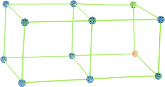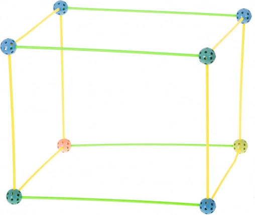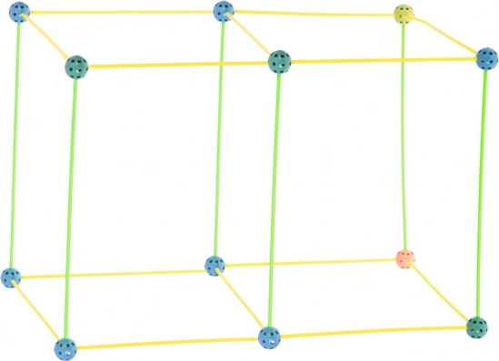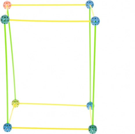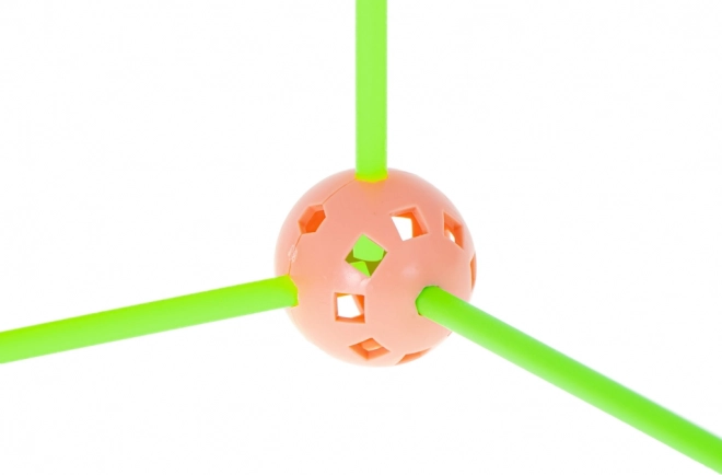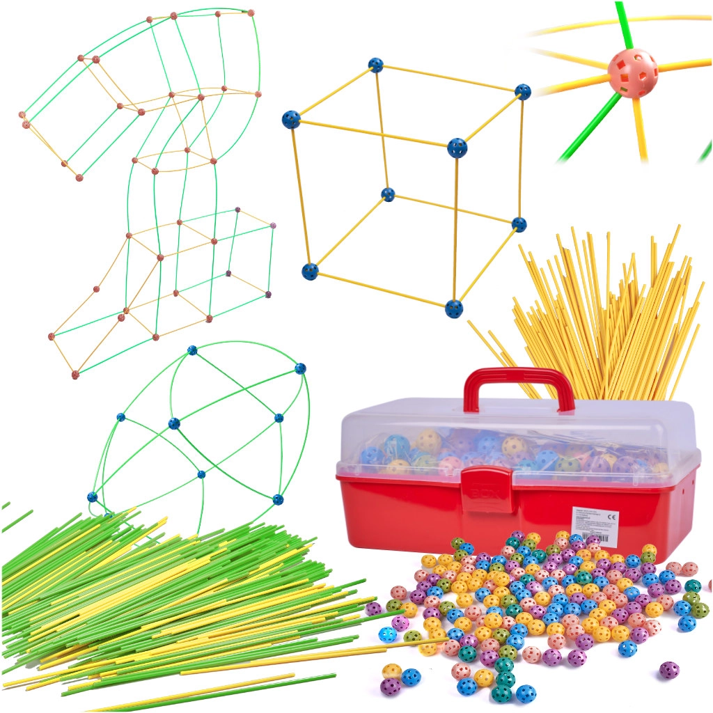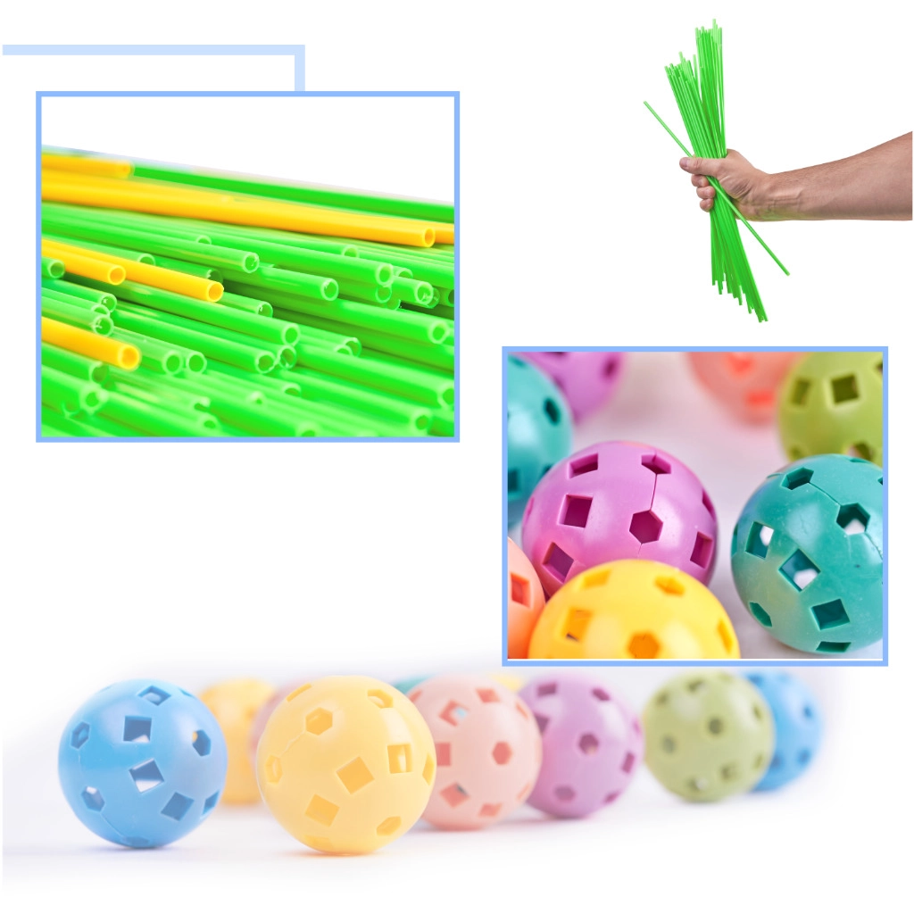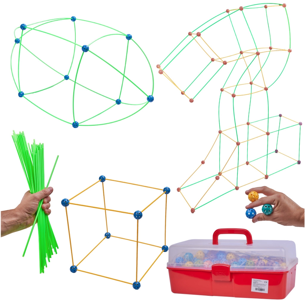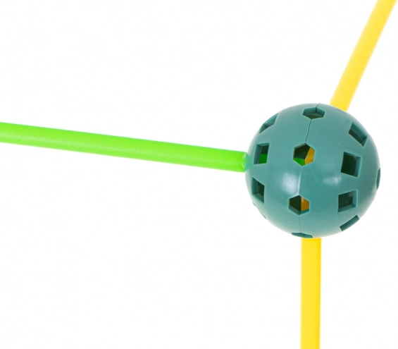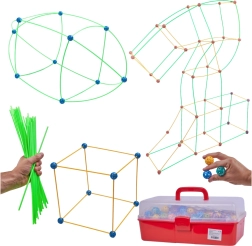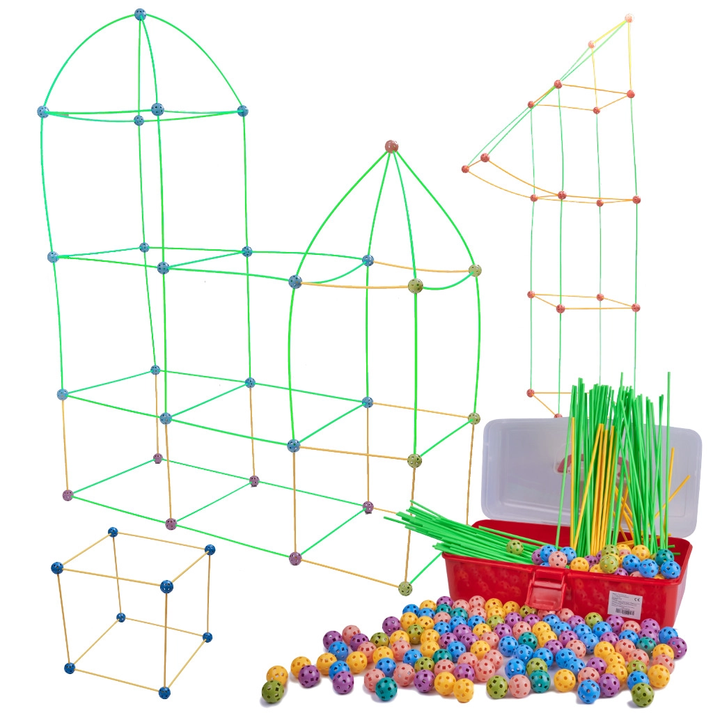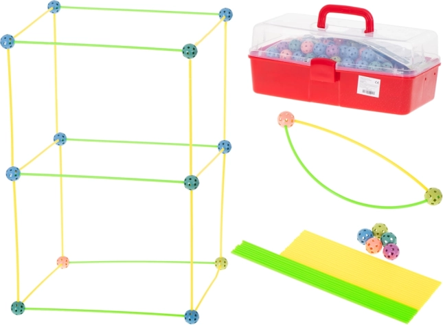 Táto konštrukčná stavebnica kombinuje dlhé plastové tyčky a odolné perforované gule s množstvom otvorov na ľahké zacvaknutie. Deti môžu vytvárať 3D stavby – od domčekov a stanov po tunely a pevnosti – fantázii sa medze nekladú. Diely sú ľahké, bezpečné a opakovane použiteľné.