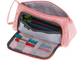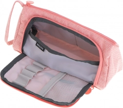 Praktický a štýlový peračník/organizér 3v1 v ružovej farbe, ktorý slúži ako školský peračník, kozmetická taštička aj cestovné puzdro. Ponúka dostatok miesta na písacie potreby či kozmetiku, pevný materiál, prehľadné vnútorné vrecká a gumené pútka a pohodlné zapínanie na zips s pútkom na nosenie.