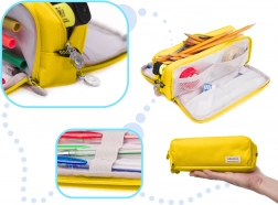 Praktické trojkomorové puzdro 3v1 do školy, kancelárie aj na cestovanie. Vďaka trom zipsovým priehradkám udrží všetky písacie potreby prehľadne usporiadané a bezpečne uložené. Vnútorné vrecká a pružné gumičky zabezpečia, že bude mať každý doplnok svoje miesto. Kompaktné rozmery šetria miesto v batohu, zatiaľ čo odolný polyester garantuje dlhú životnosť. Multiúčelové využitie, 3 samostatné komory, odolný materiál a organizácia na jednotku.