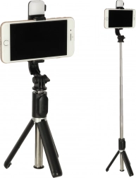 - Selfie tyč (čierna), bluetooth ovládač, USB kábel na nabíjanie svetla, používateľský manuál