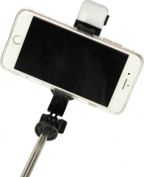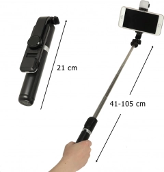 Integrovaná LED lampa s 8 diódami ponúkne 6 režimov jasu a voľbu teplého či studeného odtieňa svetla – ideálne pre selfie, streamy aj videohovory. Teleskopická tyč sa vysunie až na 105 cm, takže ľahko zachytíte širšiu scénu. Po zložení je kompaktná a ľahko sa zmestí do kabelky či batohu.
