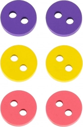 Sada farebných gombíkov a dlhá šnúrka nabádajú k tvoreniu rôznych vzorov, počítaniu aj učeniu farieb.