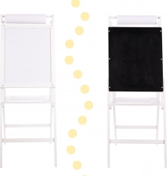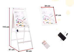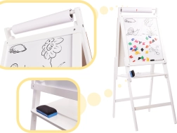 Ponúkame vám skvelú hračku, ktorá kombinuje zábavu s učením. Obojstranná tabuľa pomáha rozvíjať zručnosti v písaní, počítaní a poznávaní písmeniek. Vďaka svojej robustnej drevenej konštrukcii je tabuľa stabilná a jednoducho použiteľná pre každú činnosť.