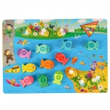 Drevená magnetická hra rybky a včielky montessori 3v1