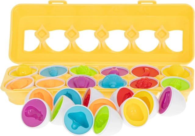 Objavte jedinečnú hru vo forme vajíčok, ktorá určite osloví všetkých malých prieskumníkov. Tento kreatívny set obsahuje 12 vajíčok, z ktorých každé skrýva iný tvar a farbu pod škrupinkou. Hlavnou úlohou je spojiť dve polovice, aby vytvorili celok, čo podporuje logické myslenie a kreativitu detí. Hra s vajíčkami rozvíja nielen manuálnu zručnosť, ale aj schopnosť rozpoznávania tvarov a farieb. Vďaka ľahkosti a kompaktným rozmerom ich ľahko vezmete na cestu. Perfektne sa hodí pre vyplnenie času počas čakania alebo dlhého cestovania.