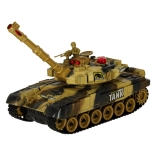 RC tank v púštnom prevedení ponúka plynulú jazdu vpred/vzad, otáčanie na mieste a otočnú vežu o 180° na obe strany (spolu 360° palebný sektor). Mäkké gumové pásy zabezpečujú dobrú priľnavosť na rôznych povrchoch. Pri výstrele tank simuluje realistický spätný ráz a sprievodné zvuky motora či paľby.