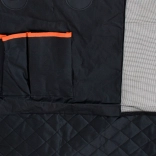 Veľká univerzálna deka do auta v tvare ochranného boxu sa rýchlo upevní na opierky hlavy pomocou nastaviteľných popruhov a spoľahlivo zakryje celý priestor zadných sedadiel. Zipsy na bokoch umožnia zdvihnúť bočnice a vytvoriť uzavretý priestor, takže pes nevyskočí pri otvorení dverí. Vodeodolná a ľahko umývateľná vrstva udrží interiér v čistote aj po výletoch v daždi či po lese.