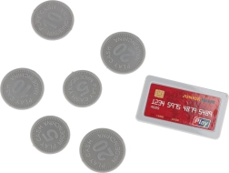 - Realistické príslušenstvo: váha, platobný terminál, skener, platobná karta, mince a bankovky.