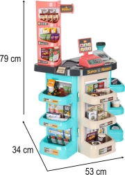 Pripravte sa na nákupy! Tento priestranný detský supermarket s reálnymi funkciami nadchne každého malého obchodníka. Deti si môžu vyskúšať rolu predavača aj zákazníka, skenovať tovar, platiť kartou aj v hotovosti a voziť nákup v priloženom vozíku. Hra na obchod prirodzene rozvíja sociálne zručnosti, predstavivosť a učí deti pravidlám každodenného života.