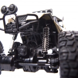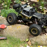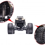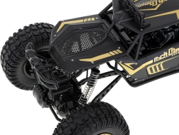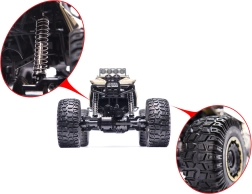 Tento robustný rock crawler s dĺžkou 51 cm je stvorený na hravé prekonávanie prekážok. Veľké gumové kolesá s dezénom a pružinové odpruženie zaisťujú skvelú trakciu a stabilitu v teréne. Kovová „karoséria“ zvyšuje odolnosť pri náročnej jazde, takže je ideálny pre začiatočníkov aj skúsených nadšencov.