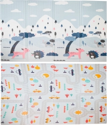 Podložka ponúka vzory lesa a ulice na dvoch stranách, čo prináša možnosť rýchlej zmeny prostredia pre dieťa.