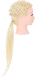 Táto kadernícka hlava s realistickými črtami a dlhými blond vlasmi poskytuje stabilný základ na nácvik širokej škály techník. Vďaka hustému osadeniu prameňov a smeru rastu vlasov je práca plynulá, vlasy sa dobre delia na sekcie a ľahko sa tvarujú do moderných účesov.