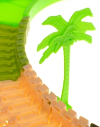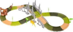 Sada obsahuje: 160 dielov dráhy, autíčko, 2 dinosaury, 4 palmy, most a bránu. Autíčko je poháňané 1 batériou AA 1,5V, ktorá nie je súčasťou balenia. Všetky diely dráhy sa ľahko skladajú a sú veľmi flexibilné pre rôzne tvary a varianty.