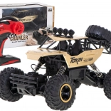 Výkonný terénny RC model na dobrodružnú jazdu mimo cesty. Ponúka stály pohon 4x4, kovovú konštrukciu, nezávislé pružinové odpruženie a dosah ovládania až 50 m. Jednoduché ovládanie je ideálne pre začiatočníkov aj pokročilých. Elegantné zlaté prevedenie vynikne na každej trati.