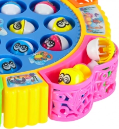 Zapnite rotujúce jazierko, pripravte prúty a začnite chytať! Rybky sa pri otáčaní striedavo otvárajú a zatvárajú, takže je potrebné presné načasovanie a šikovnosť. Hra je ideálna pre 1–4 hráčov a vďaka veselej hudbe a výrazným farbám si ju deti okamžite zamilujú.