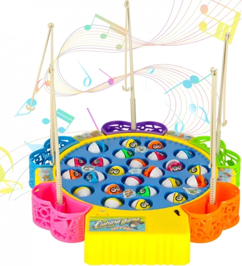 Veselá elektrická hra chytania rybičiek prináša napätie aj smiech pre celú rodinu. Kruhové jazierko sa pomalým otáčaním uvádza do pohybu rybičky, ktoré otvárajú a zatvárajú pusinky – správne načasovanie z vás urobí šampióna rybolovu. Vďaka zvukovým efektom je atmosféra hry ešte zábavnejšia.