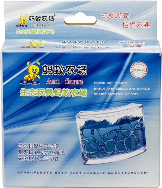Toto edukačné mravenčie akvárium je naplnené špeciálnym, netoxickým modrým gélom, ktorý mravcom poskytuje vhodné prostredie na hĺbenie tunelov a zároveň im slúži ako potrava. Stačí urobiť niekoľko štartovacích otvorov v géle, vložiť pár mravcov a môžete na vlastné oči sledovať ich prácu a premenu vnútornej štruktúry kolónie.