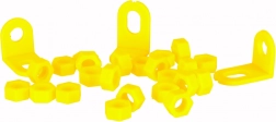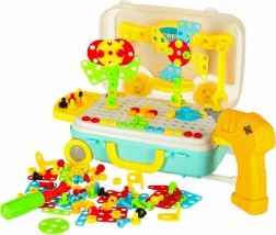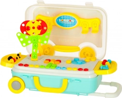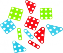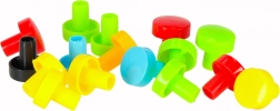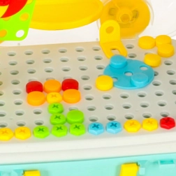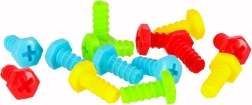 Sada farebných skrutiek, gombíkov a tvarov umožní skladať kvety, zvieratká aj geometrické obrazce a učí rozpoznávať farby a tvary.