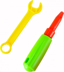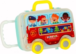 Táto edukačná sada je ideálna pre malých majstrov. Farebné skrutky, doštičky a tvary sa skrutkujú do pevnej perforovanej dosky – či už ručne, alebo pomocou detskej batériovej vŕtačky, ktorá sa točí ako skutočná. Deti si precvičia koordináciu oko–ruka, rozpoznávanie farieb a tvarov aj technické myslenie.