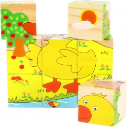 Prineste kúzlo farmy do detskej izby s týmto dreveným puzzle setom. Sada obsahuje 9 farebných kociek, ktoré možno použiť na poskladanie 6 rôznych farmárskych motívov vrátane psíkov, kačičiek, kravičiek, kohútov, zajacov a jahniatok. Bezpečné a odolné—kocky sú vyrobené z prirodzene brúseného dreva bez ostrých hrán, čo zaisťuje bezpečnosť počas hry.