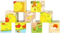 Každá kocka je zdobená farebnými ilustráciami z farmy, ktoré stimulujú detskú predstavivosť a zrakové vnímanie.