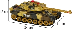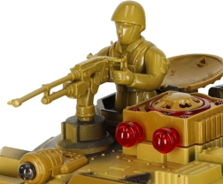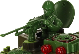 Pásový podvozok s mäkkými gumovými pásmi zabezpečuje dobrú trakciu, otočná veža sa otáča až o 300° a infračervené delo umožňuje bezpečnú streľbu na krátku vzdialenosť. Efektné LED osvetlenie a bohaté zvukové efekty motora, dela a guľometu umocnia atmosféru skutočného bojiska. Kvalitný plast a precízne spracovanie vydržia mesiace zábavy.