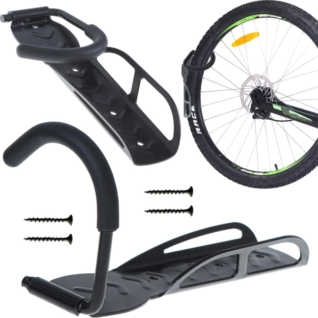 Držiak je vhodný pre všetky typy bicyklov bez ohľadu na veľkosť kolies. Montáž je jednoduchá a rýchla, stačí ho pripevniť na stenu skrutkami a rozpínacími kolíkmi, ktoré sú súčasťou balenia. Robustná konštrukcia a odolné materiály zaručujú, že bicykel bezpečne udrží na svojom mieste.