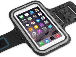 Nastaviteľný pásik na suchý zips sa prispôsobí obvodu ramena 27–40 cm a drží telefón stabilne aj pri dynamickom pohybe.