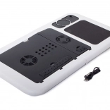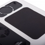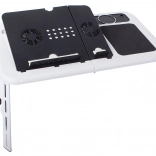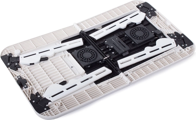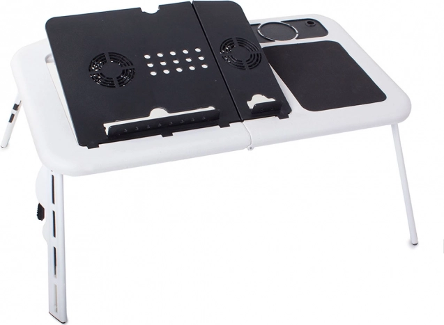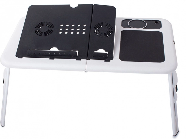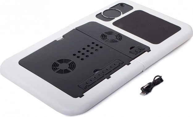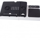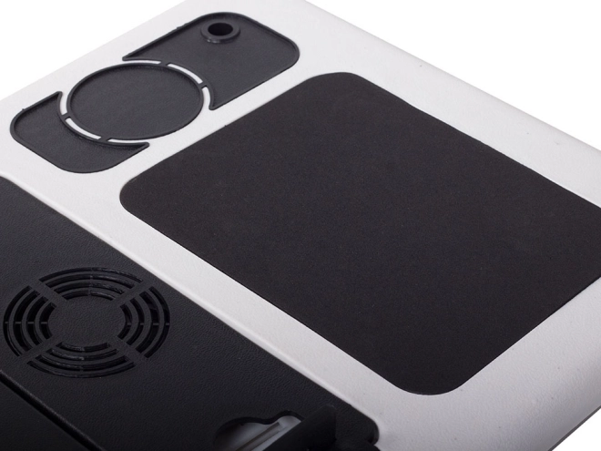 Stolík je vybavený dve USB ventilátory, ktoré účinne chladia váš notebook a zabraňujú prehrievaniu. Ďalej je súčasťou podložka pod myš, držiak na šálku a pero pre ešte väčšiu praktickosť.