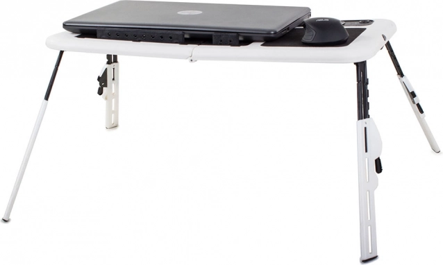 Skladací stolík s nastaviteľnými nohami je ideálny pre použitie v obmedzených priestoroch ako je posteľ alebo pohovka. Ľahko sa prenáša a ukladá.
