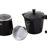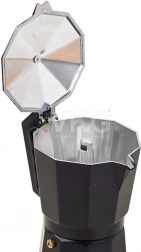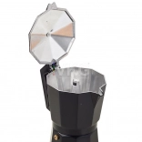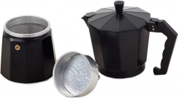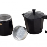 Tradičná moka kanvička v modernom čiernom prevedení spája nadčasový dizajn s praktickými funkciami pre dokonalé domáce espresso. Telo z hliníka je ľahké, výborne vedie teplo a zaistí rýchlu prípravu vašej obľúbenej kávy približne do 5 minút.