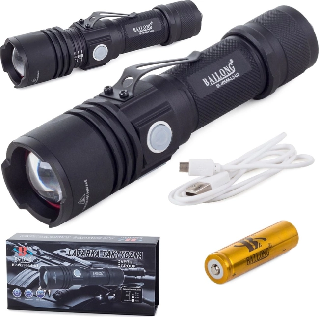 Odolné taktické svietidlo BAILONG je vyrobené z leteckého hliníka s tvrdo eloxovaným povrchom. Dôkladné utesnenie pomocou O‑krúžkov chráni mechanizmus pred dažďom, vlhkosťou aj blatom, protišmykový povrch a ergonomická rukoväť zabezpečujú istý úchop v každej situácii.