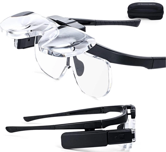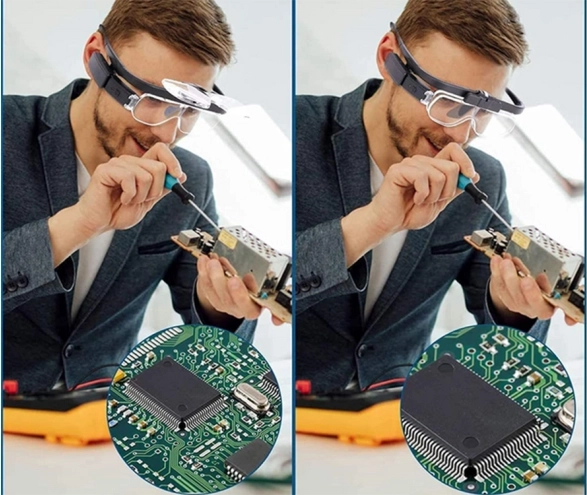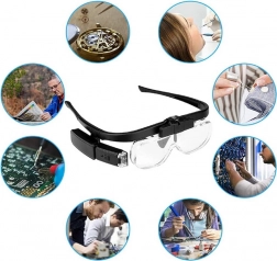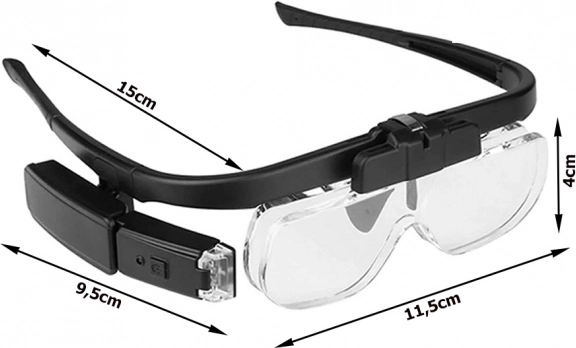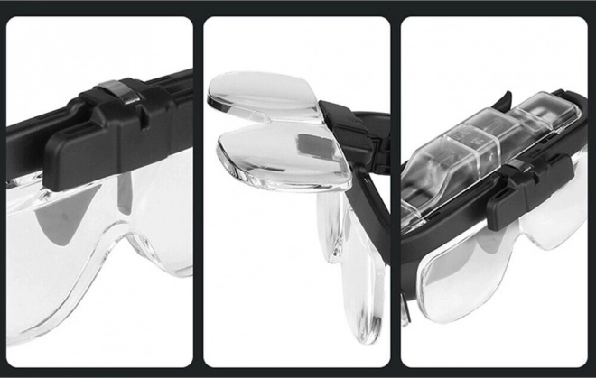 Čelová lupa s konštrukciou v štýle okuliarov uvoľní ruky a zaistí stabilný pohľad na detail. Tri vymeniteľné šošovky 1,5x / 2x / 2,5x môžete kombinovať do vyšších zväčšení 3,5x / 4,0x / 4,5x, takže si ľahko prispôsobíte výkon aktuálnej úlohe. Dvojica výkonných LED diód s nastaviteľným smerom svitu rovnomerne presvetlí pracovnú plochu.