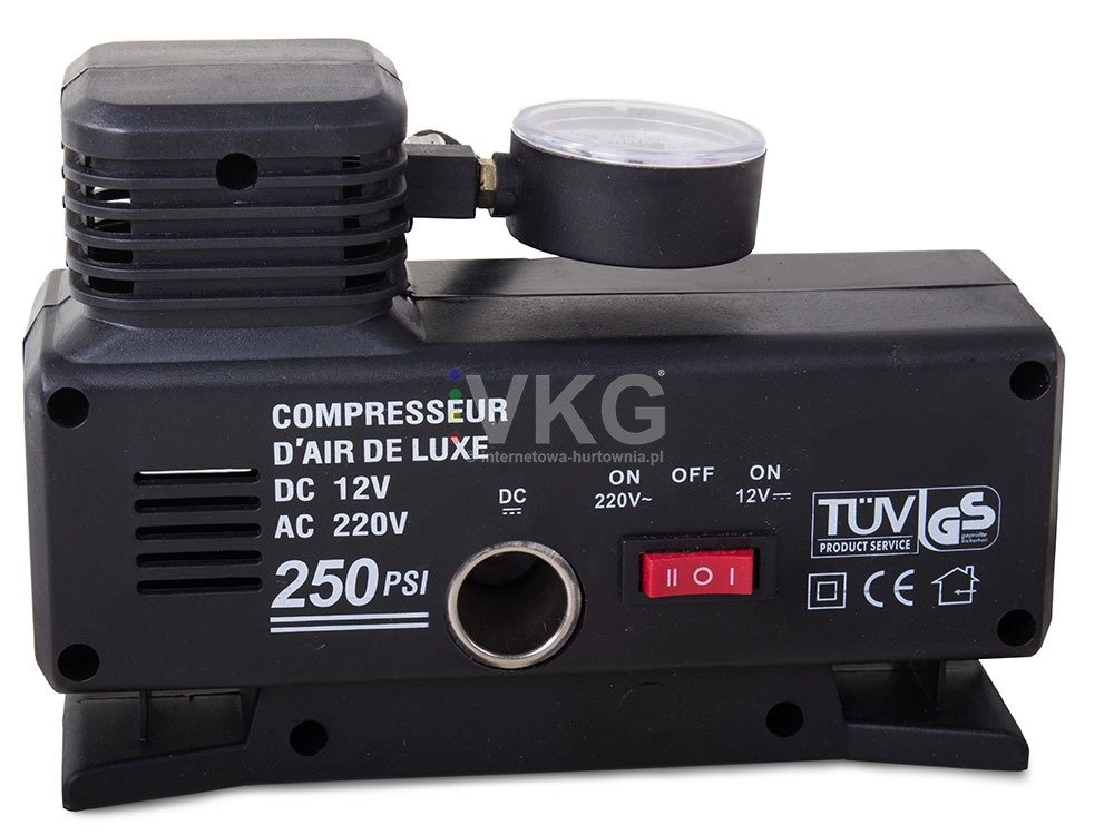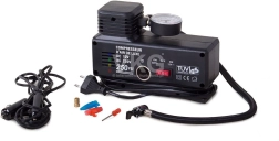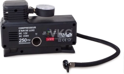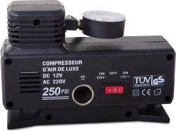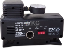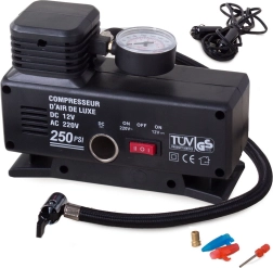 Praktický automobilový kompresor napájaný zo zapaľovačovej zásuvky 12 V aj zo siete 230 V. Ľahko a rýchlo nafúknete pneumatiky auta aj bicykla, ale aj lopty a nafukovacie matrace. Súčasťou je manometer, vzduchová hadica cca 50 cm a 3 univerzálne nadstavce pre športové vybavenie.