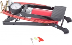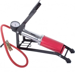 Praktická nožná pumpa s presným manometrom a jednovalcovým piestom na rýchle a pohodlné hustenie pneumatík áut, motocyklov a bicyklov, lôpt aj matracov. Vďaka robustnej kovovej konštrukcii, maximálnemu tlaku 100 PSI/7 bar a priloženým adaptérom je ideálna na cesty aj do garáže. Stabilný rám, tvarovaný gumový pedál a bezpečnostný uzáver na bezpečné zloženie zabezpečia jednoduché používanie aj skladovanie.