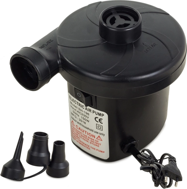 Toto **elektrické čerpadlo** je ideálne na rýchle a účinné nafukovanie a vyfukovanie vzduchu z rôznych predmetov ako sú matrace, pontóny, lopty a polštáře. Je poháňané striedavým napätím 230 V, čo zaručuje spoľahlivý výkon.