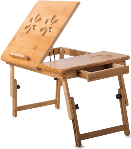 Bambusový stolík na notebook je navrhnutý pre použitie doma, v posteli, na gauči aj na cestách. Je vybavený nastaviteľnými nohami a uhlom sklonu, čo umožňuje optimálnu polohu pri práci alebo štúdiu. Prítomnosť opierky výrazne zvyšuje bezpečnosť vášho notebooku.