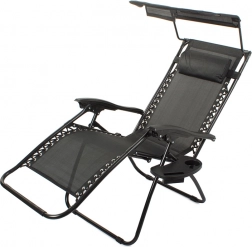 Ležadlo Zero Gravity sa prispôsobí vašej obľúbenej polohe jedným plynulým pohybom a vďaka aretácii ju bezpečne udrží. Priedušná sieťovina je príjemná aj v horúčave a odolný oceľový rám s práškovou povrchovou úpravou zaisťuje stabilitu a dlhú životnosť. Integrovaná nastaviteľná strieška vás ochráni pred slnkom a mäkký vankúš podoprie hlavu.