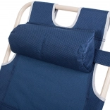 Mechanizmus plynulého nastavenia a aretácie polohy vám umožní zvoliť ideálny uhol operadla – od čítania až po úplné natiahnutie. Nastaviteľný vankúšik pod hlavu podporuje správnu relaxačnú polohu a odľahčuje krčnú chrbticu.