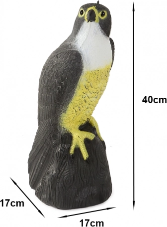 Realistická maketa dravca SOKOL účinne odháňa špačky, holuby aj hlodavce z vašej záhrady, dvora či balkóna. Je z odolného plastu, má prirodzené rozmery a možno ju zavesiť alebo zaťažiť pieskom pre vyššiu stabilitu. Skvelo chráni úrodu a zároveň je to dekoratívny prvok exteriéru.