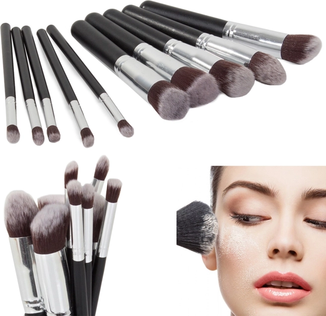 Táto univerzálna sada zahŕňa 5 väčších štetcov na podkladovú bázu, make‑up, púder či lícenku a 5 menších štetcov na detailnú a bodovú aplikáciu korektora, rozjasňovača a očných tieňov. Vďaka mäkkým, hustým a rovnomerne zastrihnutým štetinám dosiahnete hladký a prirodzený výsledok bez šmúh.