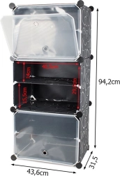 S touto modulárnou policou môžete mať svoje topánky a doplnky vždy prehľadne usporiadané. Skriňa je tvorená tromi segmentmi, je ľahká a zároveň stabilná. Jej modulárne konštrukcia umožňuje jednoduchú montáž a flexibilitu v usporiadaní podľa vašich potrieb. Kovové rámy sa jednoducho pripájajú pomocou ABS spojovacích prvkov.
