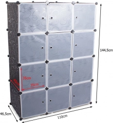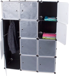 Modulárna šatníková skriňa ponúka 12 segmentov, ktoré možno ľahko kombinovať podľa vašich potrieb a priestoru. Jednotlivé časti možno stohovať alebo umiestniť vedľa seba podľa vašich požiadaviek. Obsahuje tyč na vešiaky na zavesenie odevov, čím poskytuje flexibilitu v organizácii vášho šatníka.